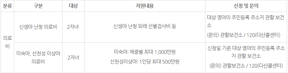 또한 임신·출산 의료비는 단태아 기준 100만 원까지 바우처가 제공됩니다.