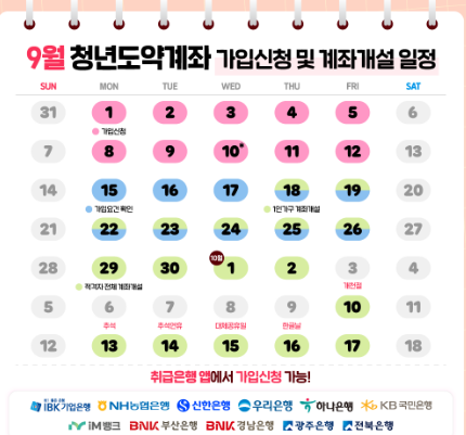 2025년 9월 기준 청년도약계좌 신규 신청은 9월 29일부터 10월 17일까지 진행됩니다.