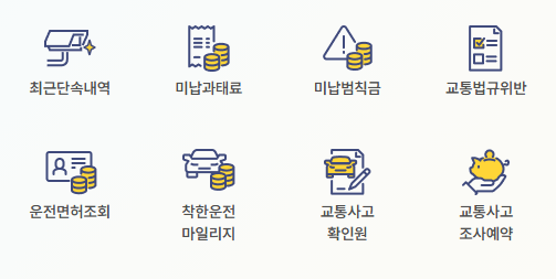 교통 단속 카메라에 의한 무인단속 내역이나 미납 범칙금을 빠르게 확인할 수 있습니다.
