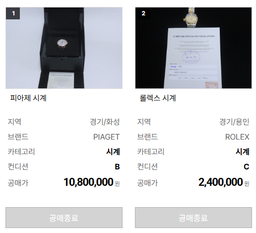 공매 대상은 명품 시계, 귀금속, 브랜드 가방 등 고가품이 많습니다.