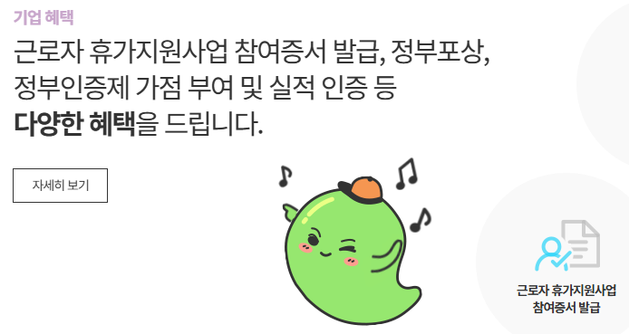 근로자 휴가비 지원사업은 개인이 아니라 기업 단위로 신청을 진행해야 합니다.
