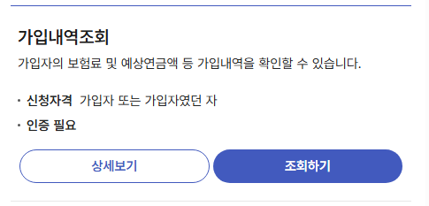 공동인증서 로그인 후 가입내역, 납부내역, 추납 가능 여부를 확인할 수 있습니다.