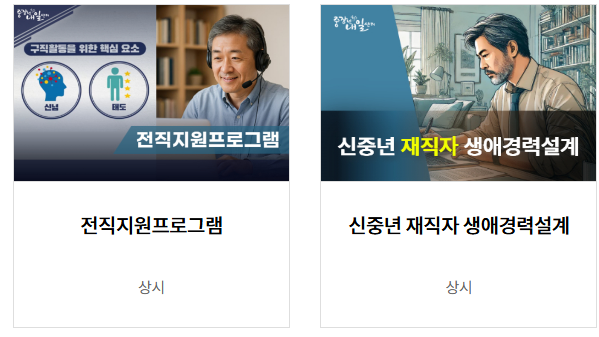 센터는 만 40세 이상 중장년층을 대상으로 하며 재직자도 참여 가능합니다.