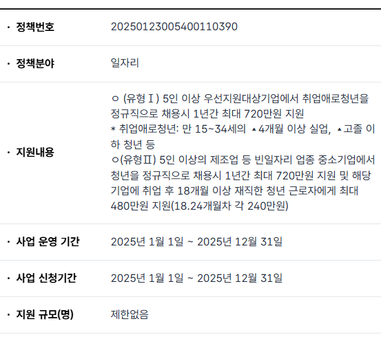 정책은 매년 변동 가능하므로 고용24 사이트에서 최신 공고를 확인할 수 있습니다.