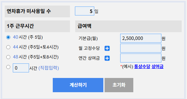 보다 정확하게 확인하려면 연차수당 계산기를 활용할 수 있습니다.