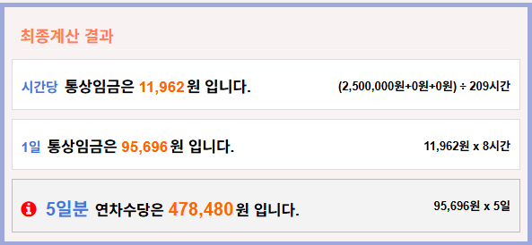 보다 정확하게 확인하려면 연차수당 계산기를 활용할 수 있습니다.