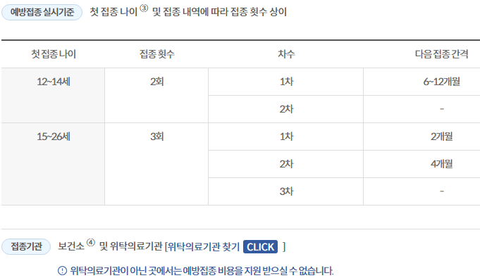 부모와 청년 여성은 사전에 지정 병원을 확인하고 접종 예약을 권장합니다.