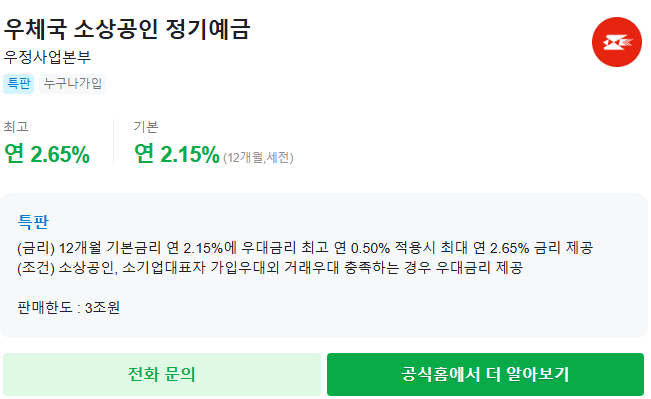 특판 금리는 우체국 금융상품몰에서 확인할 수 있습니다.