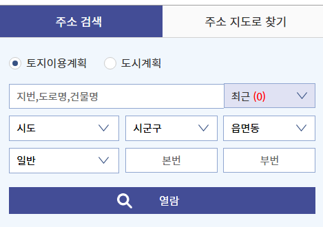이곳에서는 지번을 입력하면 해당 토지의 용도지역, 행위제한, 도시계획 여부 등을 즉시 확인할 수 있습니다.