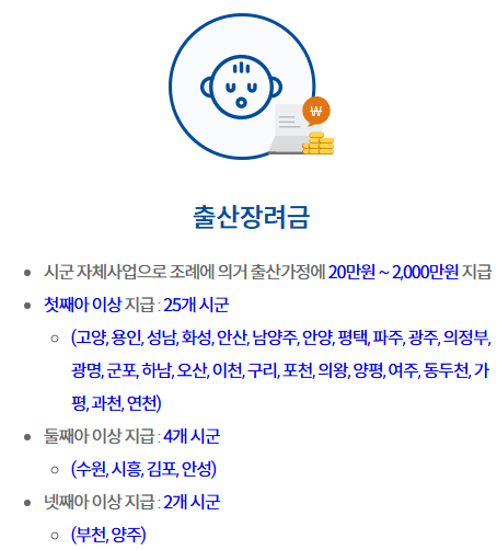 출산 장려금 많이 주는 곳 현황