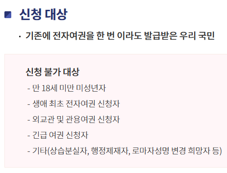신청 자격은 외교부 여권 안내 포털에서 확인할 수 있습니다.