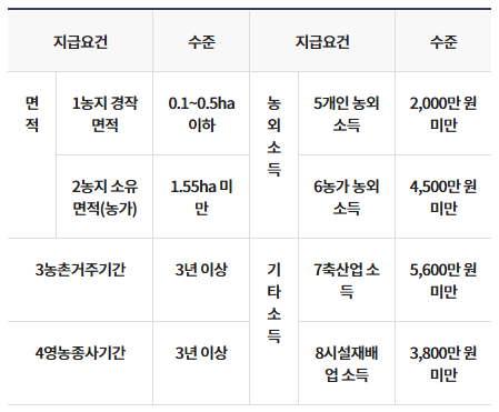 특히 0.1헥타르 이상 경작해야 기본형 직불금 지급 대상에 포함됩니다.