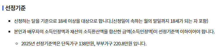 정확한 기준은 복지로 또는 시청·읍면동 행정복지센터에서 조회할 수 있습니다.