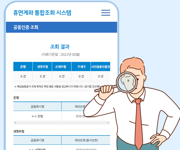‘휴면예금 계좌 통합조회’는 본인 명의의 모든 휴면계좌를 한 번에 확인할 수 있는 효율적인 시스템입니다.