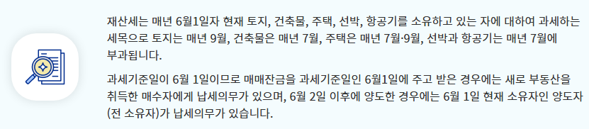 따라서 소유권 이전이나 건물 신축, 용도 변경이 있을 경우 즉시 재산세 기준도 변경됩니다.