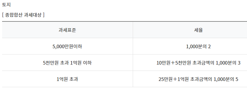 즉, 토지는 공시지가, 주택은 공시가격을 통해 각각 과세표준금액이 계산되는 구조입니다.