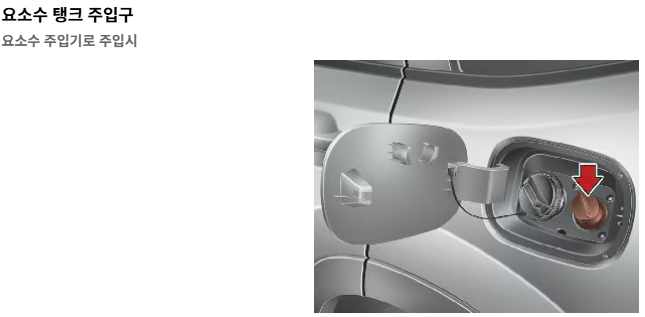 요소수 시스템 (디젤 엔진) 요소수를 사용해 배기가스에 남아있는 질소 산화물(NOx)을 질소와 물로 바꾸는 장치입니다. 요소수 소모량은 주행 습관(고속 주행, 급가속, 급감속 등)과 환경(외기 온