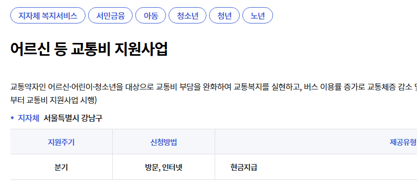 또한 장애인 교통비 지원, 청년 교통비 지원 등과 중복 지급되지 않습니다.