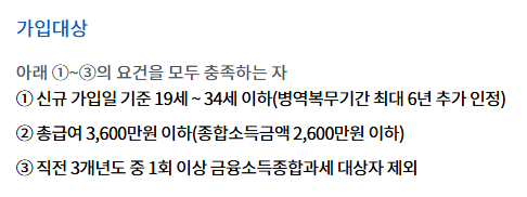 가입일 기준 만 19세 이상 만 34세 이하 청년이면 신청할 수 있습니다.