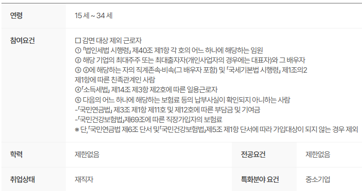 세부 연령 기준은 조세특례제한법 시행령 제27조에서 확인하실 수 있습니다.