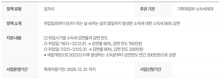 청년 근로자가 최초로 감면을 신청한 날로부터 5년간 소득세의 90%를 감면받을 수 있습니다.