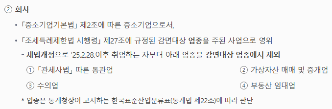 반면 금융업, 부동산업, 전문 서비스업 등 일부 업종은 감면 대상에서 제외됩니다.