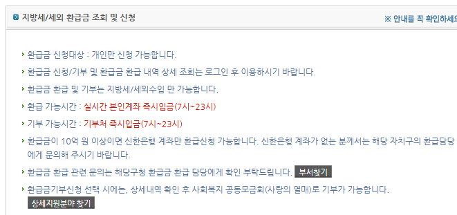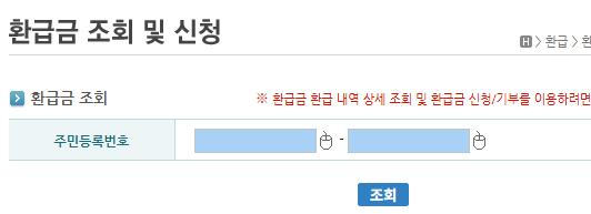 환급금 조회 시스템 확인하기