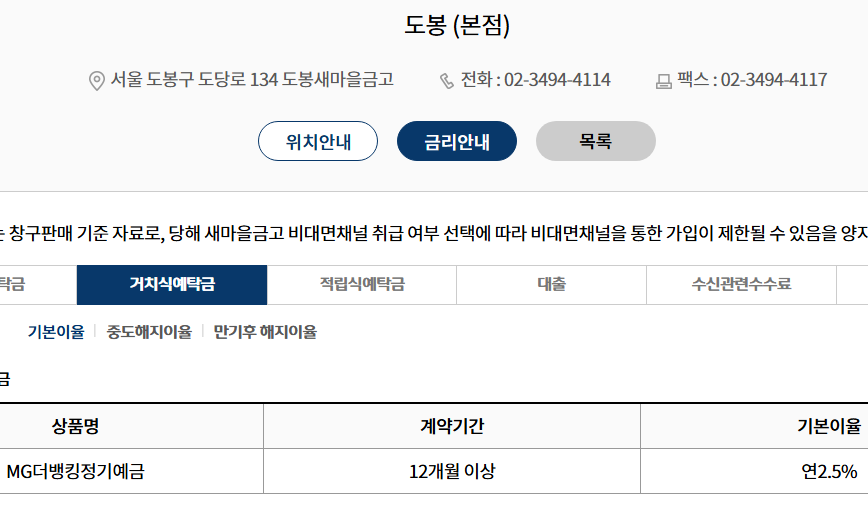 지점 금리 구성은 금고별 상품 안내 페이지에서 확인하실 수 있습니다.