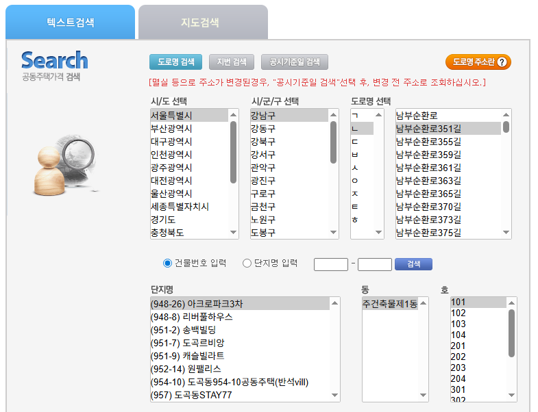 [멸실 등으로 주소가 변경된경우, "공시기준일 검색"선택 후, 변경 전 주소로 조회하십시오.] [멸실 등으로 주소가 변경된경우, "공시기준일 검색"선택 후, 변경 전 주소로 조회하십시오.]