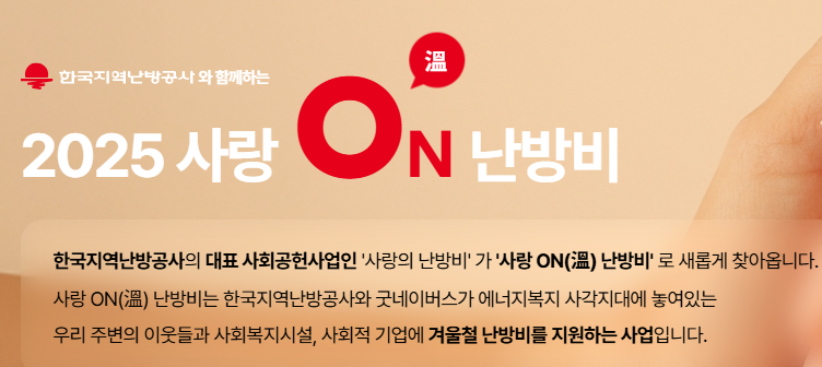 사랑on 난방비 지원사업은 에너지 취약계층의 겨울철 난방 부담을 덜기 위해 마련된 공익 프로그램입니다.