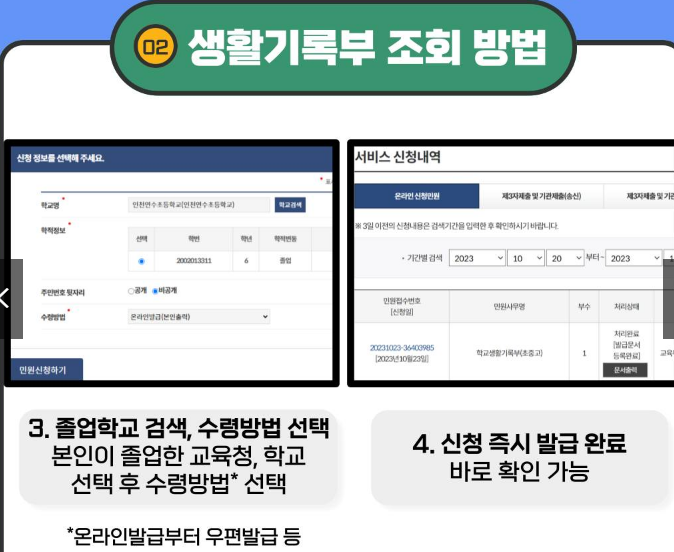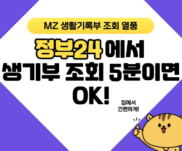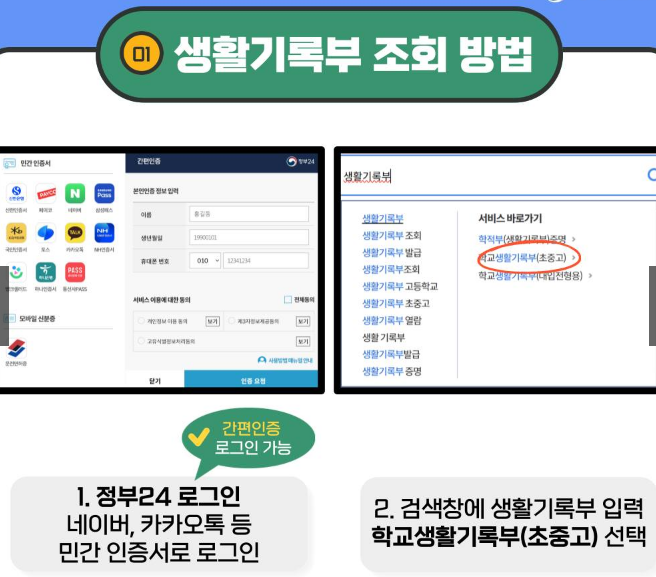 전체 신청 과정은 정부24 생활기록부 조회 서비스에서 바로 확인하실 수 있습니다.