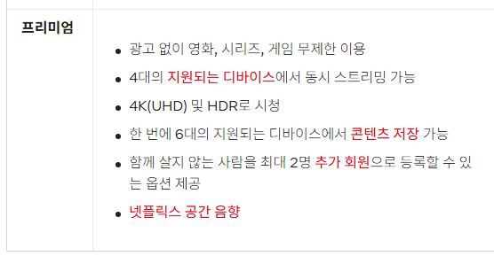 프리미엄 요금제는 UHD 화질과 최대 동시 재생 수 확장 기능을 제공하는 것이 특징입니다.