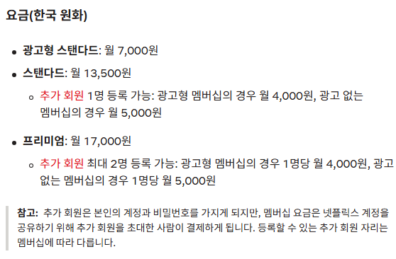 넷플릭스는 최근 계정 공유 정책을 강화해 동일 거주지 사용 원칙을 적용하고 있는 것이 특징입니다.