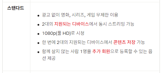 요금제는 화질 기준과 동시 재생 가능 기기 수로 구분되며 이용 패턴에 따라 선택 기준이 달라집니다.