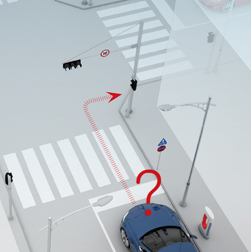 보행자가 여러 방향에서 접근할 수 있으므로 광범위한 시야 확보가 필요합니다.