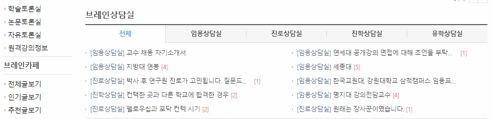 하이브레인넷 사이트에서는 단순히 채용정보만 제공하는 것이 아니라, 브레인카페라는 곳을 통해서 각종 경험담들과 커뮤니티를 이용할 수 있습니다.