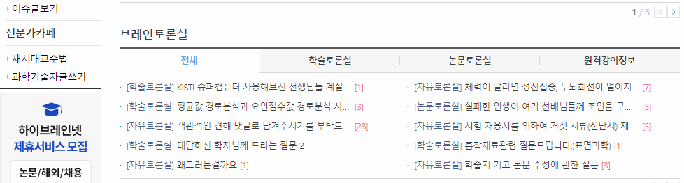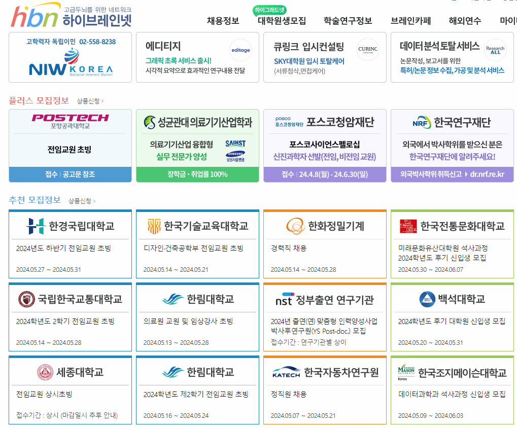 국내에서 석박사학위를 이용해서 취업 또는 진학을 위한 정보를 한 눈에 알아보려면 하이브레인넷 홈페이지를 통해서 확인해볼 수 있습니다.