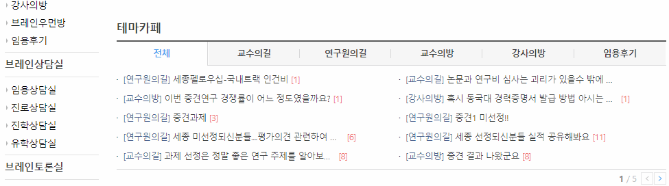 임용되고 나서의 본인의 경험담 등을 나눌 수 있는 테마카페와 임용, 진로, 진학, 유학 상담실도 있고, 학술과 논문 등을 토론할 수 있는 공간도 이용할 수 있습니다.