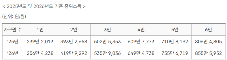 2026년 생계급여는 기준 중위소득 상승에 맞춰 가구원 수에 따라 지급액이 차등 적용됩니다.