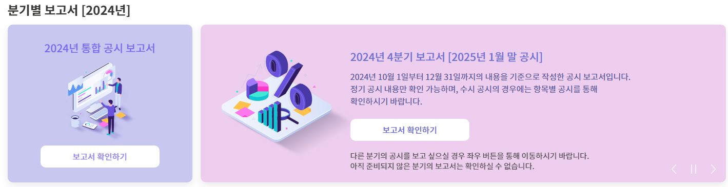 재무정보와 보수, 에너지·용수·폐기물 사용량 등 결산기준 항목은 2023년말 기준으로, 임직원 수와 신규채용 등 적시성 항목은 2024년 1분기말 기준으로 공시되었답니다.