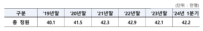 하지만 2024년 1분기에는 정기 인력증원이 반영되어 42.2만명으로 약 1천명이 증가했어요. 이런 변화는 공공기관의 조직과 인력 효율화 계획이 어떻게 실행되고 있는지를 보여주는 중요한 지표라고 할 수 있지요.
