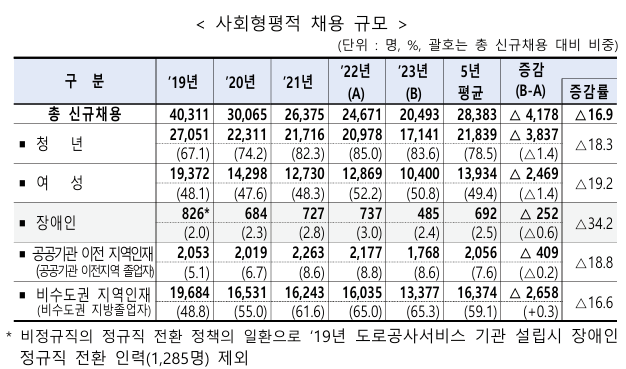 사회형평적 채용은 청년, 여성, 장애인 등 다양한 사회적 배려 계층의 고용 비율을 높이기 위한 노력이 지속되고 있어요.