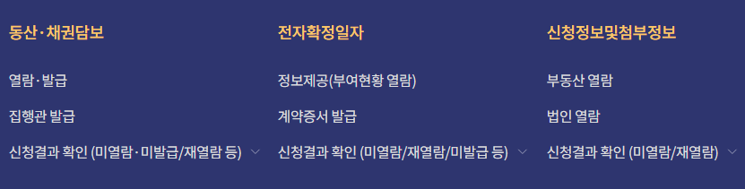 인터넷 등기소나 정부24에 접속해 확정일자 신청 메뉴를 선택합니다.