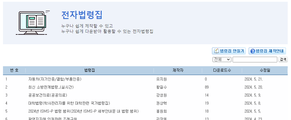 법제처에서 운용하는 국가법령정보센터 홈페이지에서는 일상에서 궁금했던 각종 법령 및 판례 등을 찾아서 확인할 수 있습니다.