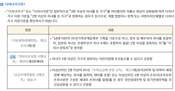 두 자녀 이상 다자녀 가구 국가지원제도