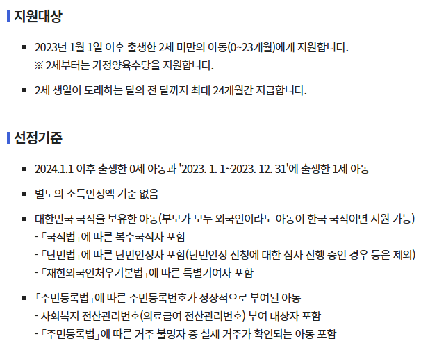 부모급여는 과거 양육수당보다 지급 대상 연령이 명확히 구분됩니다.