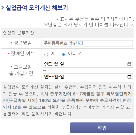고용센터 심사 과정에서 입력 정보와 다를 경우 결과가 달라질 수 있습니다.