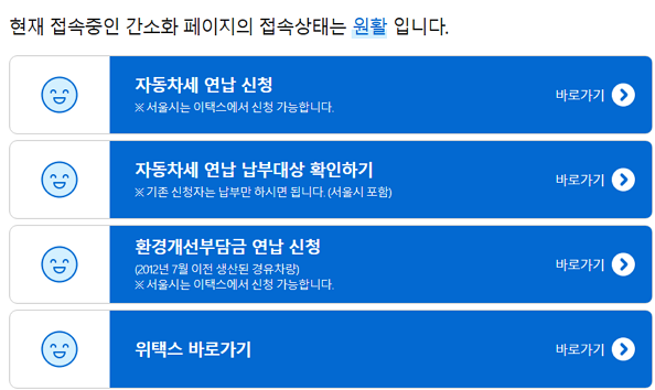 차량 정보와 세액이 자동으로 조회되어 절차가 간단합니다.