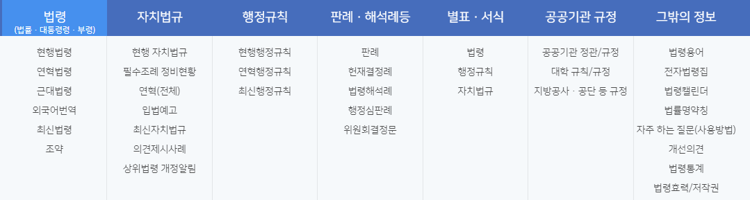 법제처에서 운용하는 국가법령정보센터 홈페이지에서는 일상에서 궁금했던 각종 법령 및 판례 등을 찾아서 확인할 수 있습니다.