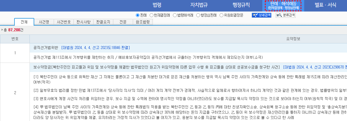 이렇게 다양한 검색 범위를 활용하면 원하는 판례나 해석례를 찾는 데 큰 도움이 될 거예요.